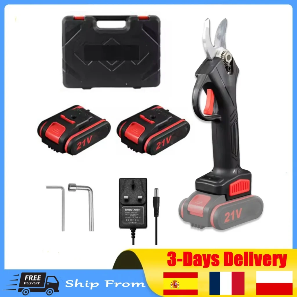 21V 1200W Cordless Electric Pruning Shears, Rechargeable Lithium Battery Handheld 0-25mm for Tree Trimming Gardening Tools