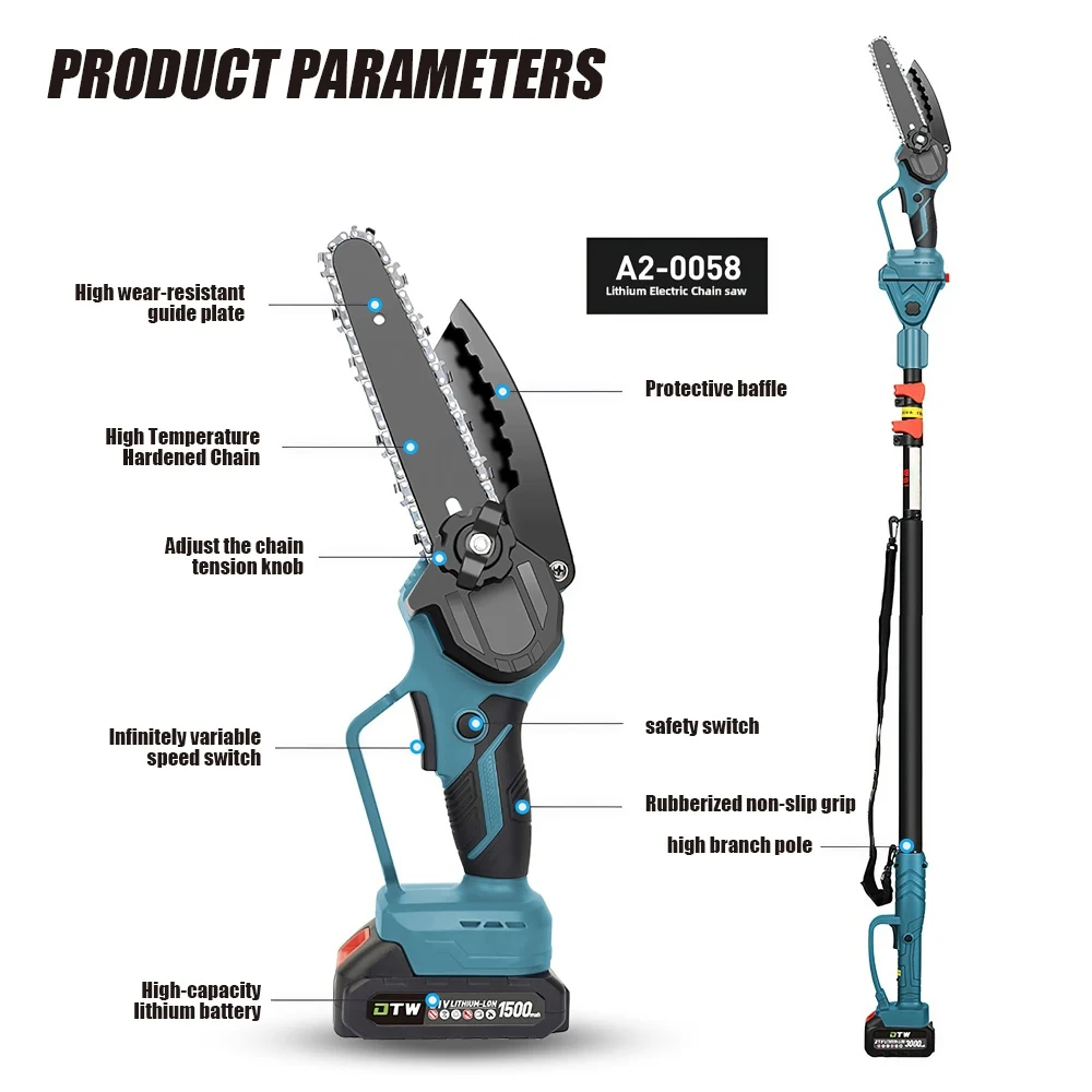 Advanced Cutting Performance: Outperforms traditional manual pole saws with superior cutting power. Achieve faster, more efficient cuts using the mini electric chainsaw, ideal for both small and large tree cutting tasks.
