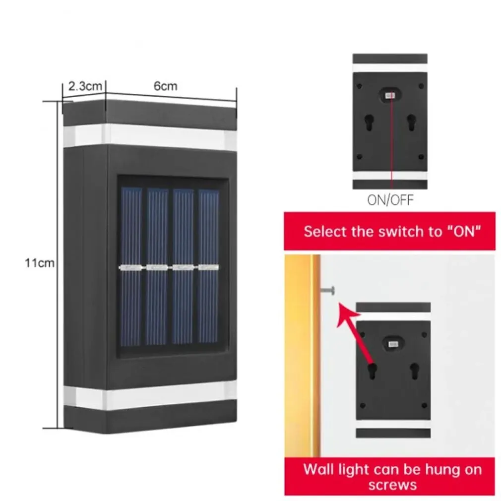 6/8/10/12 LED Solar Powered Wall Lamp Outdoor Waterproof Light UP and Down Illuminating Garden Yard Decoration Outside Sunlights