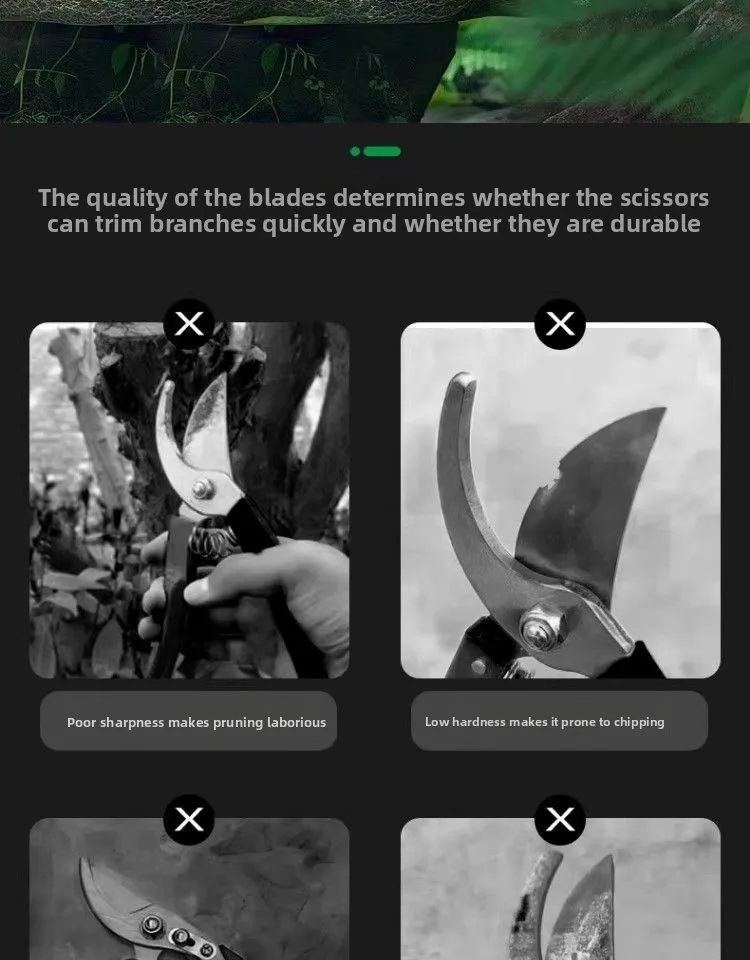 The quality of the blades determines whether the scissors can trim branches quickly and whether they are durable