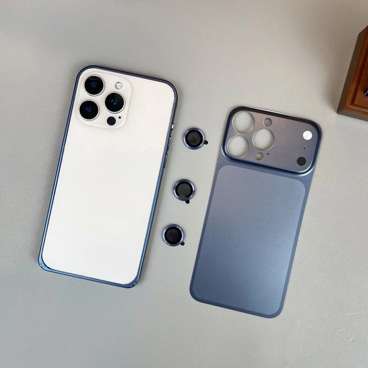 Change to 17Pro/Max Alloy Frame Metal Backplane Glass Lens Film 3 in 1 Case for iPhone 13 14 12 15 16 Pro Max Anti-Drop Cover