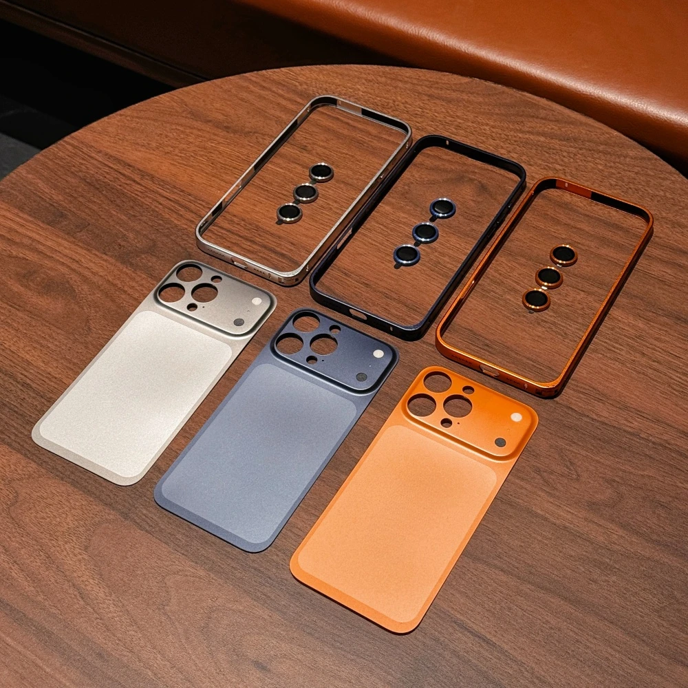 Matte Metal Frame Backplane Case for iPhone 12 13 14 15 16 Pro Max Instantly Change 17 Pro Max Large Window Camera Film Cover