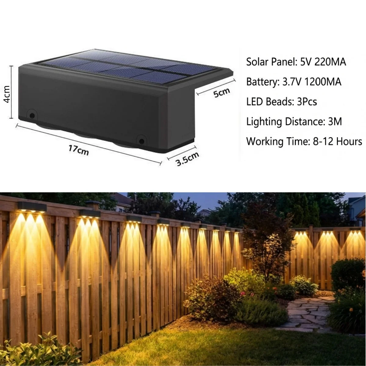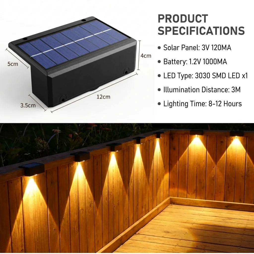 Solar Lights Outdoor IP55 Waterproof Fence Led Lights Solar Powered LED Light for Garden Outside Backyard/Step/Patio