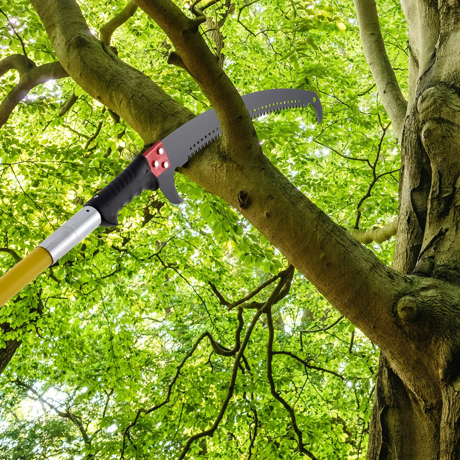 Our tree pruner pole saw is made of high-quality alloy steel cutter, ensuring high load capacity as well as smooth and fast cutting. You can easily adjust its length for pruning the leaves of palm trees and fir trees, making trimming a breeze. Perfect for any gardening enthusiast looking to an ideal tree pruner pole saw.