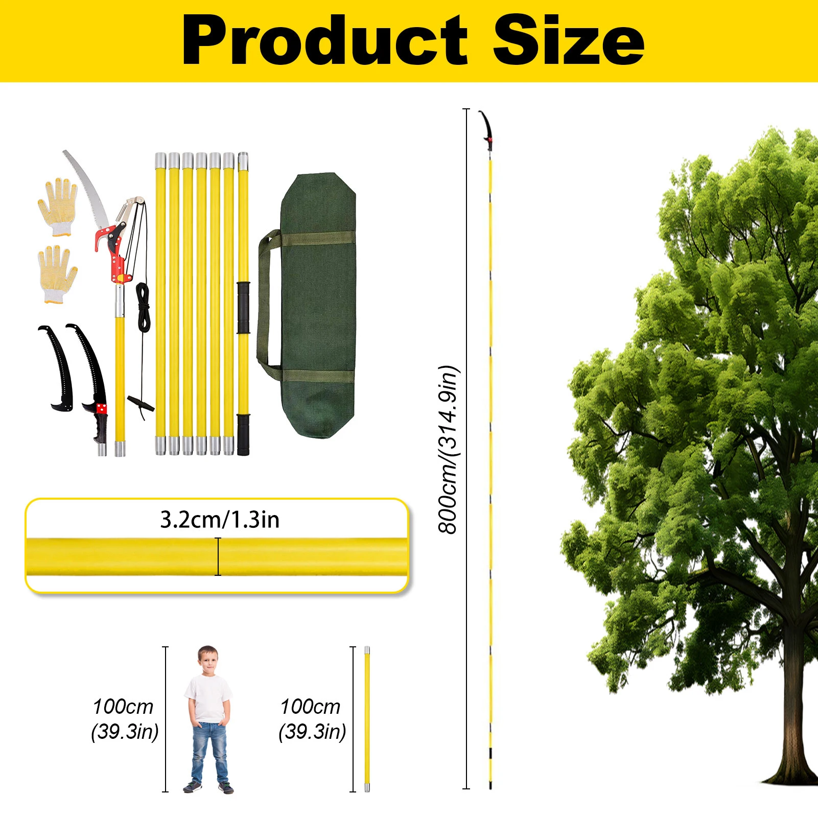 Telescopic Pruning Shears with Pruning Saw, 100-800 cm Pruning Saw with Handle, Garden Tools Set, Pole Pruner, High Reach Cut